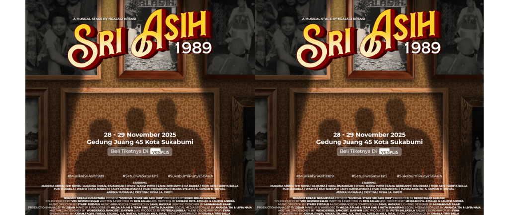 Sukabumi, Fasamedia — Pertunjukan musikal Sri Asih 1989 resmi kembali dipentaskan pada akhir November 2025. Agenda ini menjadi momen penting bagi pecinta seni pertunjukan panggung yang ingin menyaksikan karya lokal Sukabumi yang kembali hidup. Pementasan akan berlangsung di Gedung Juang 45 Kota Sukabumi, pukul 19.30 WIB, pada 28 dan 29 November 2025.